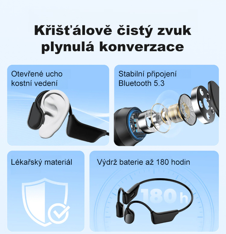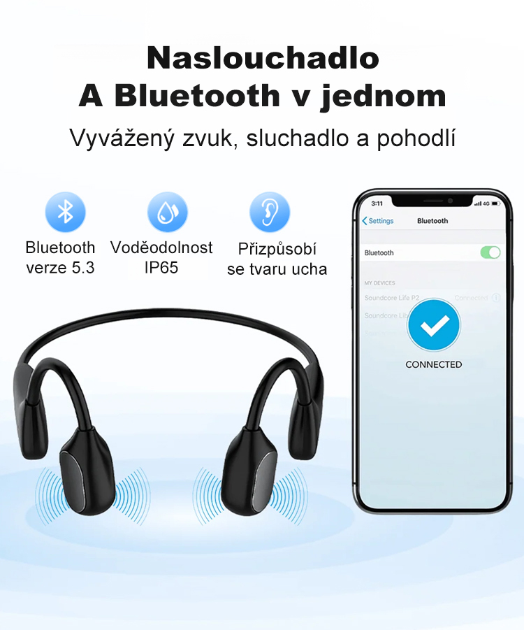 Kostní vedení sluchátek Bluetooth naslouchátka