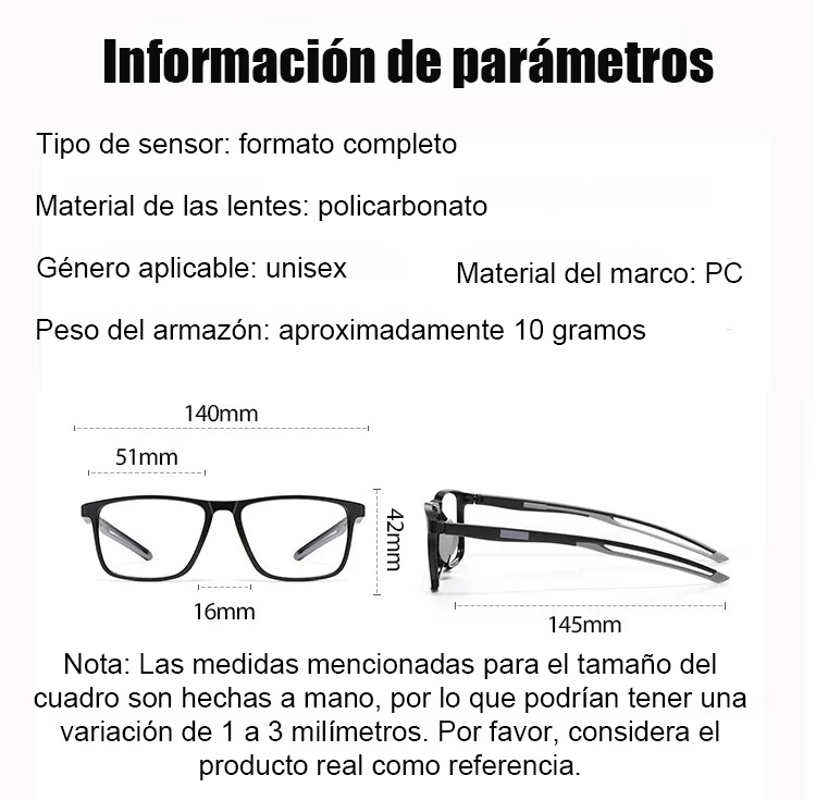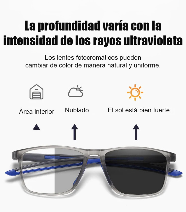 ¡Adecuadas tanto para miopía como hipermetropía! Perfectas para leer, conducir y caminar. 🌟 Bajo la luz solar, las lentes se oscurecen automáticamente, ¡igual que unos lentes de sol! Diseño ultra ligero, no sentirás fatiga aunque las uses por mucho tiempo. 🎶 ¡Oferta por tiempo limitado, aprovecha y compra ahora!